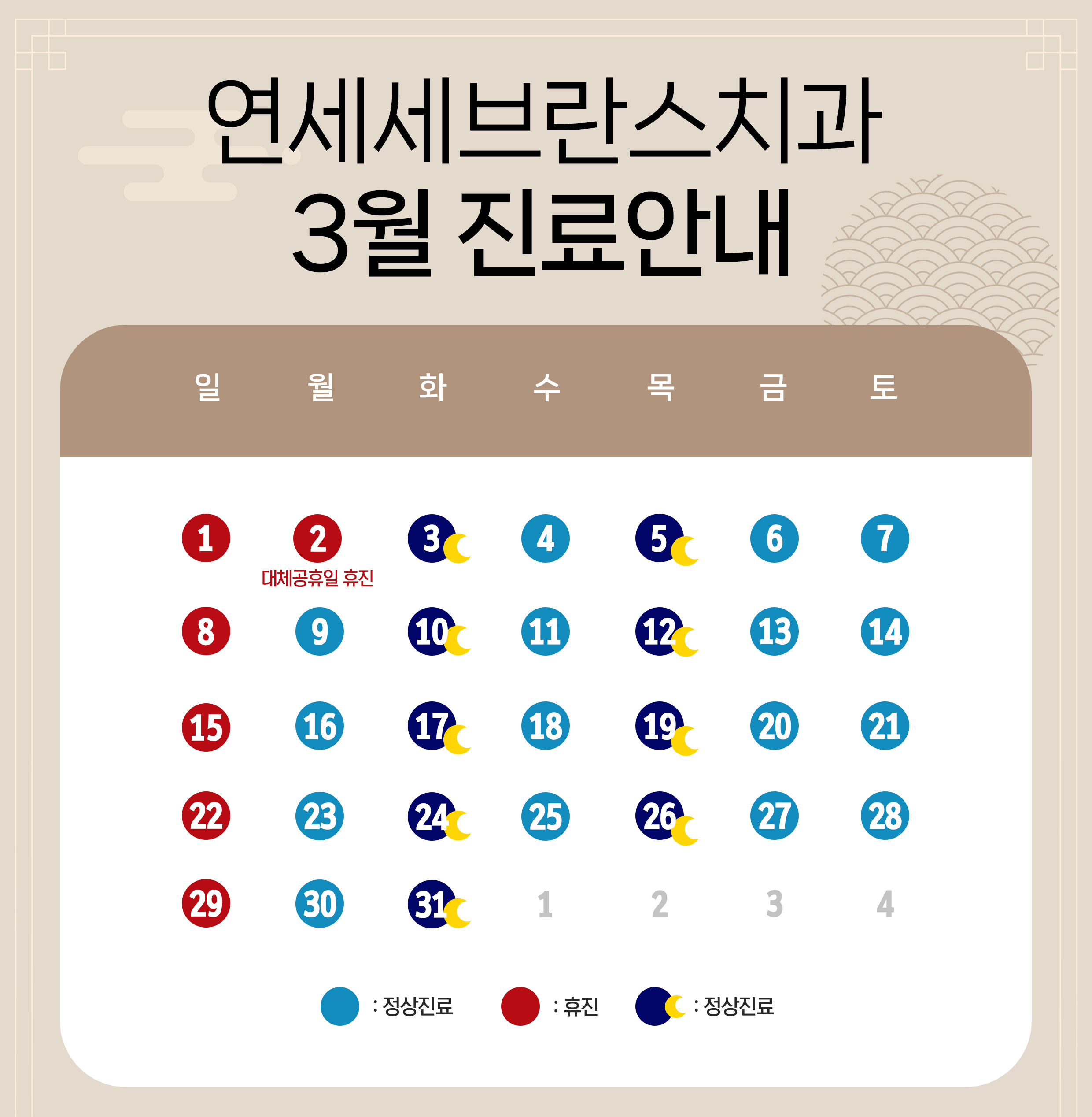 - 화, 목 : AM 10:00 ~ PM 08:30 (야간진료)
